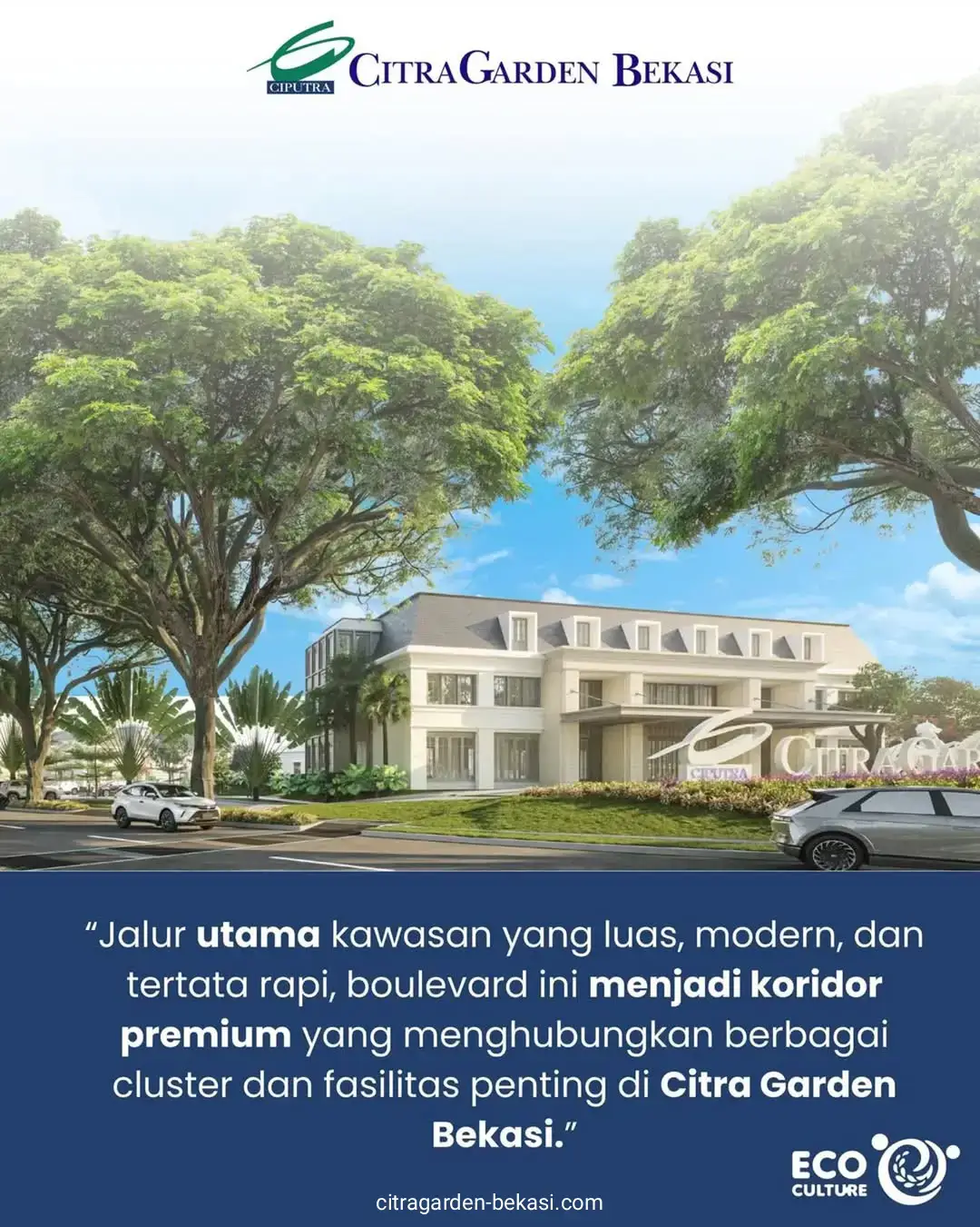 Citra Garden Bekasi merupakan proyek hunian premium terbaru yang akan segera diluncurkan oleh Ciputra Bekasi dengan konsep “Exclusive Living Begins Here” pada lahan seluas +/- 40 ha. Proyek ini diposisikan sebagai perumahan bergengsi yang berlokasi strategis di Kota Bekasi, menghadirkan standar hunian berkelas tinggi dengan filosofi pengembangan yang telah teruji dari track record Ciputra Group.
